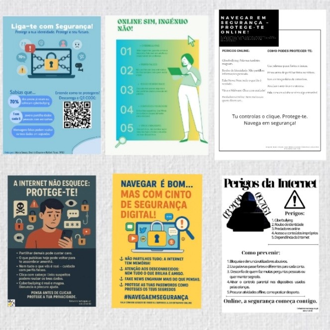 Durante a interrupção letiva da Páscoa os alunos do 11.º B3, desafiados pela professora de Geografia A, Cândida Ferreira da Silva, dividiram-se em grupos e elaboraram cartazes alusivos aos perigos da utilização da internet, um tema que tem preocupado a nossa comunidade educativa. Este trabalho surgiu com o objetivo de sensibilizar a comunidade escolar, nomeadamente os alunos, para os eventuais perigos da utilização da internet e as formas de os prevenir. Os cartazes produzidos serão afixados nos pavilhões e sala de alunos.